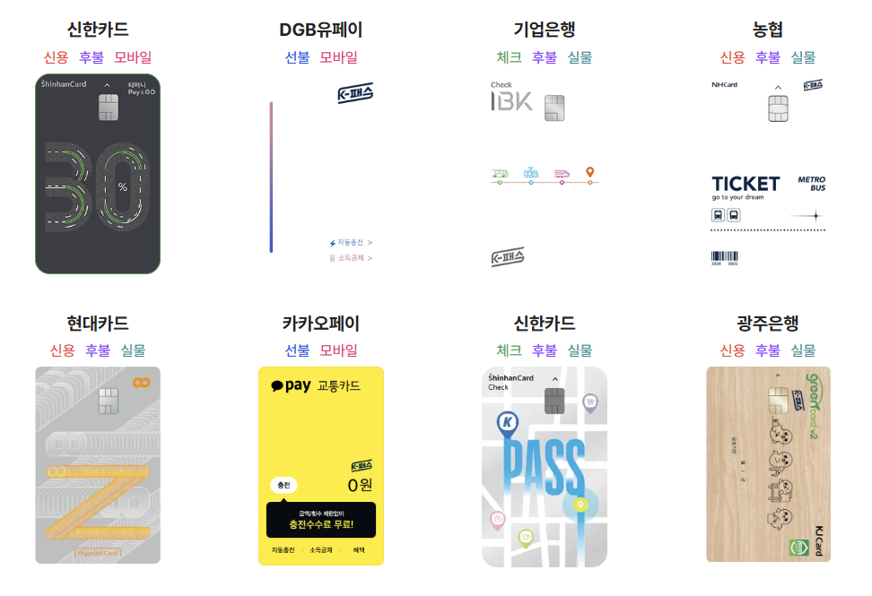 - K패스 홈페이지에서 본인이 발급 희망하는 카드 확인