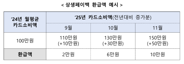 상생페이백은 더 소비한만큼 혜택으로 페이백을 지급하는 것이 다른 점입니다.